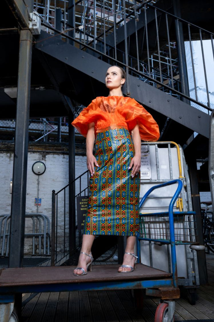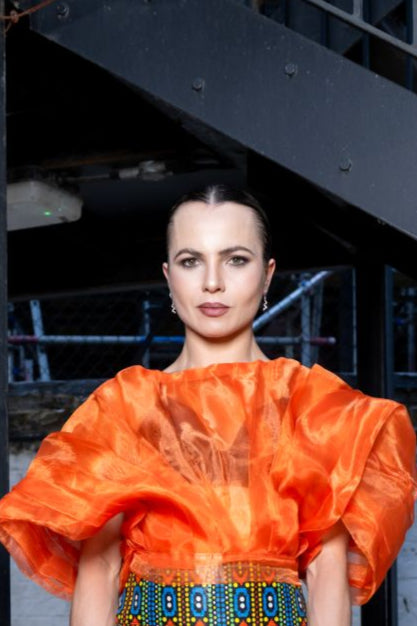 Step into effortless elegance with the Adeola Blouse, a couture-crafted statement piece that radiates confidence and charisma. Handmade from lightweight, high-quality chiffon, this luminous orange top features exaggerated pleated volume for an ethereal yet structured silhouette that floats with every step.