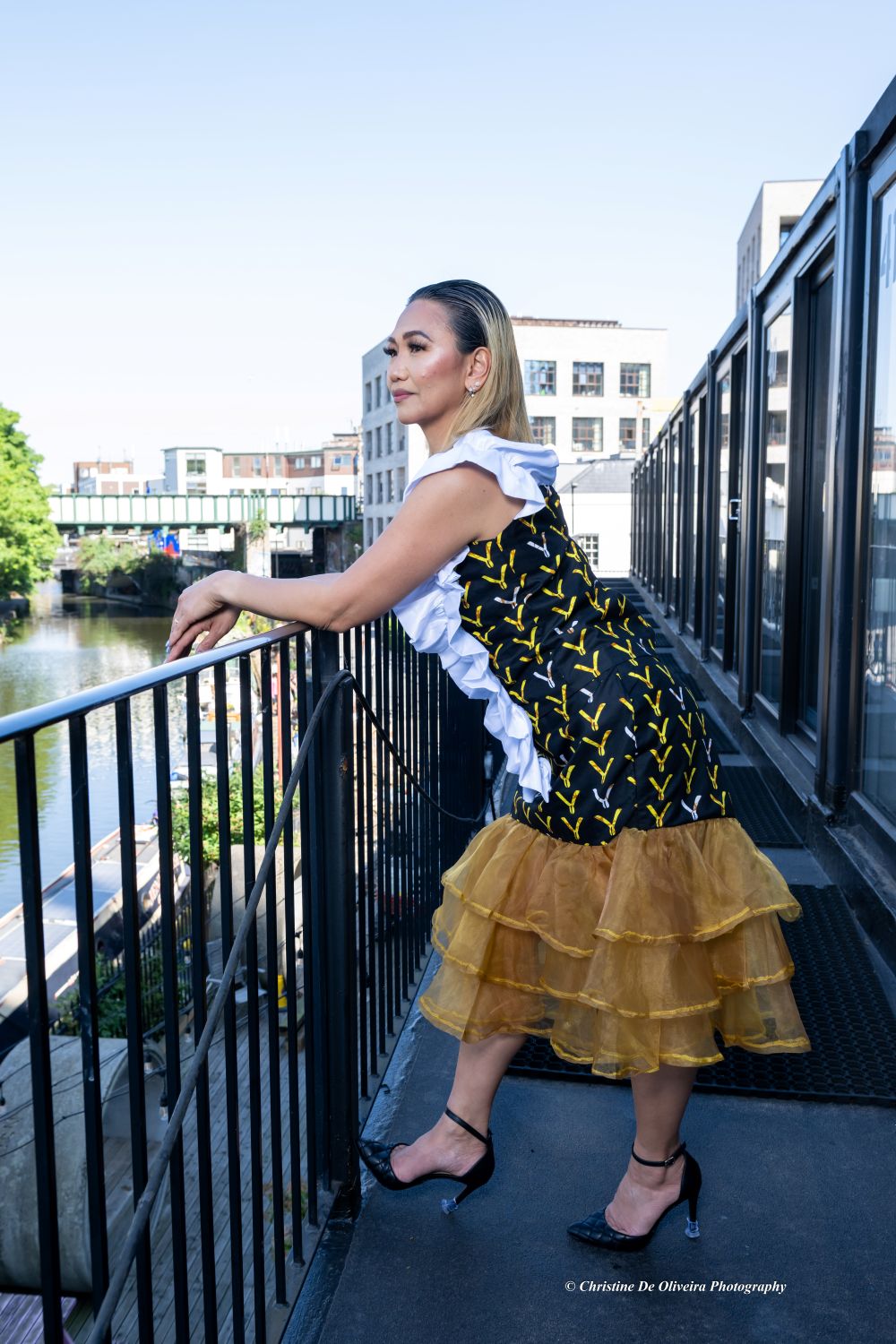 • Luxurious chiffon tiered ruffle hem