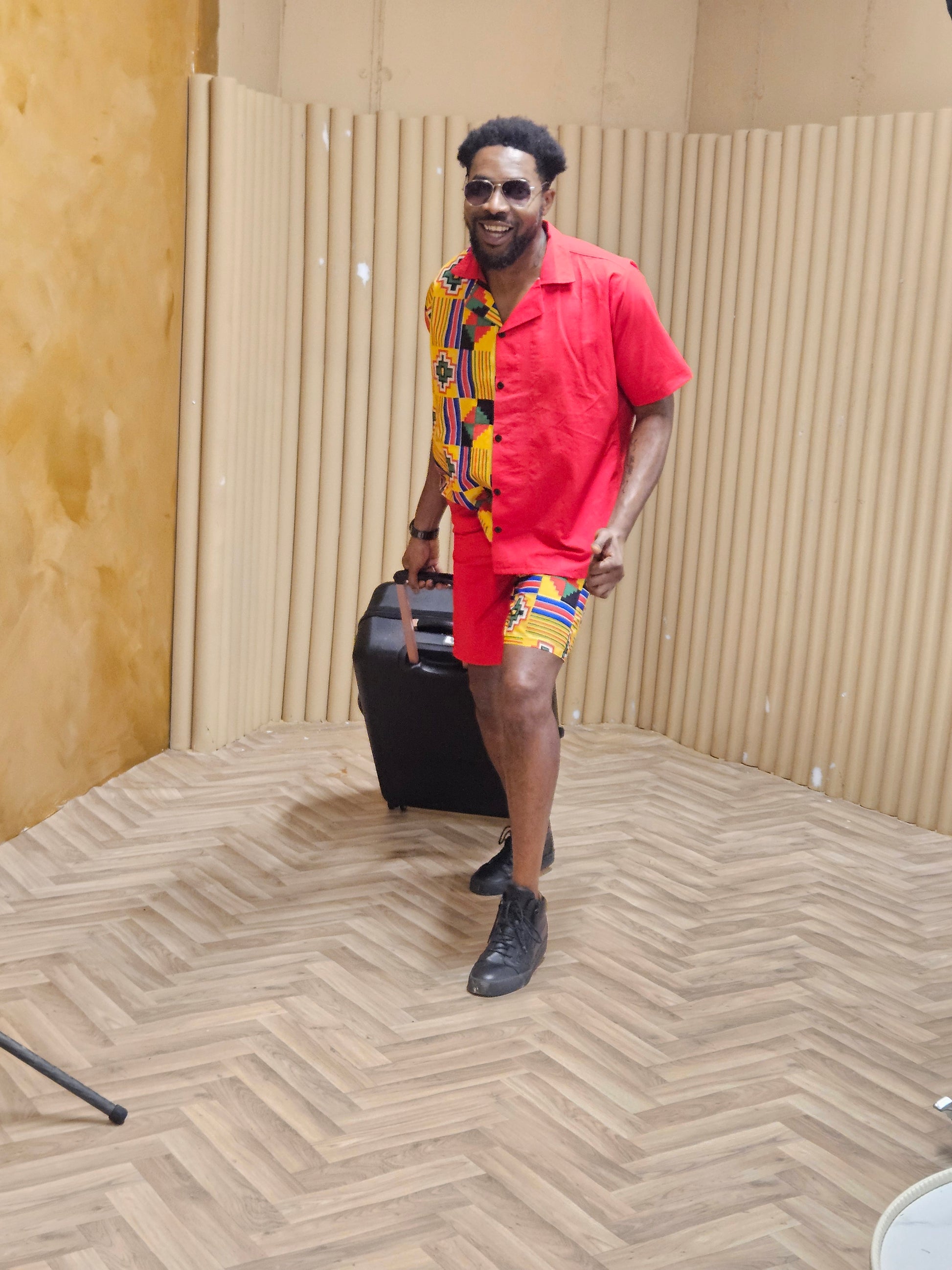 A soft linen and Ankara infused combo of shorts and shorts sleeved shirt.