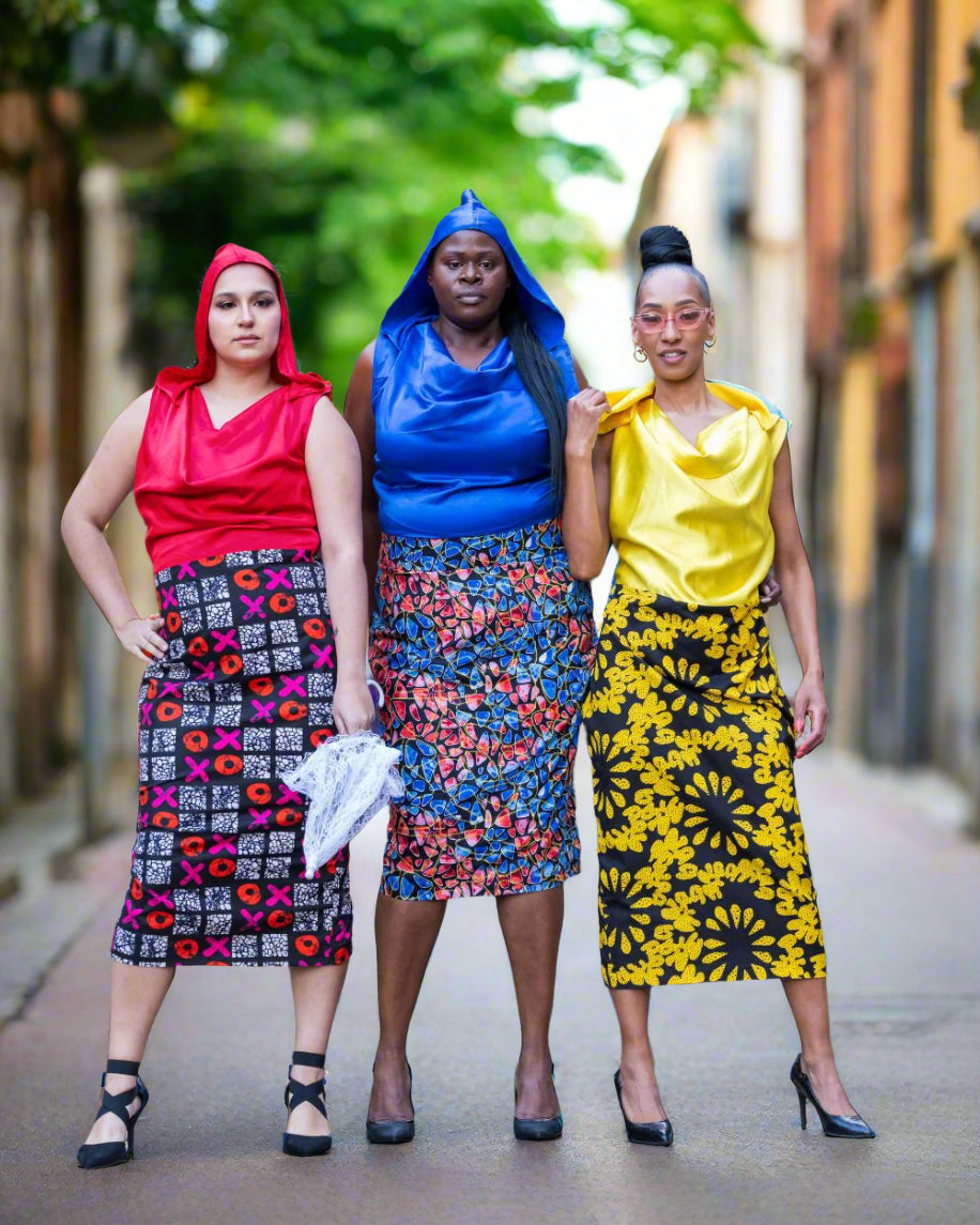 Embrace your inner queen with this show-stopping couture piece that masterfully blends African luxury with contemporary elegance. This meticulously handcrafted dress showcases the vibrant spirit of Ankara prints paired with the sophisticated allure of satin, creating a statement piece that commands attention.